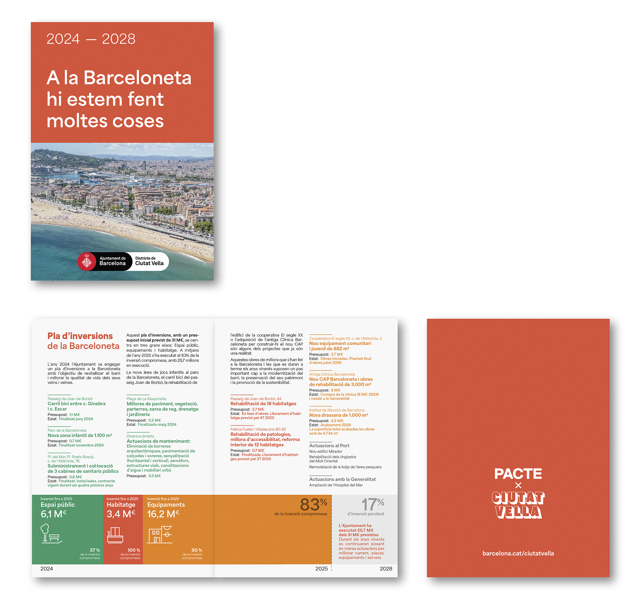 Citizen communication materials about public investments in the Barceloneta neighborhood.